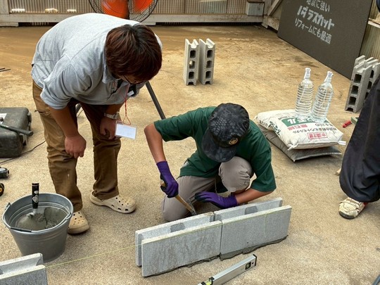 体験会では、ブロック積み体験、左官体験、電動工具体験、CAD体験、保育体験をやりました。
