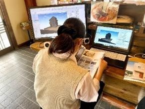 CAD体験ではカタログから材料を選んで庭のデザインを考え、作図していく体験をしました。