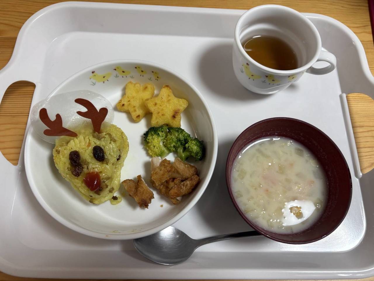 クリスマス会の後は可愛いトナカイご飯のお給食を食べました☆