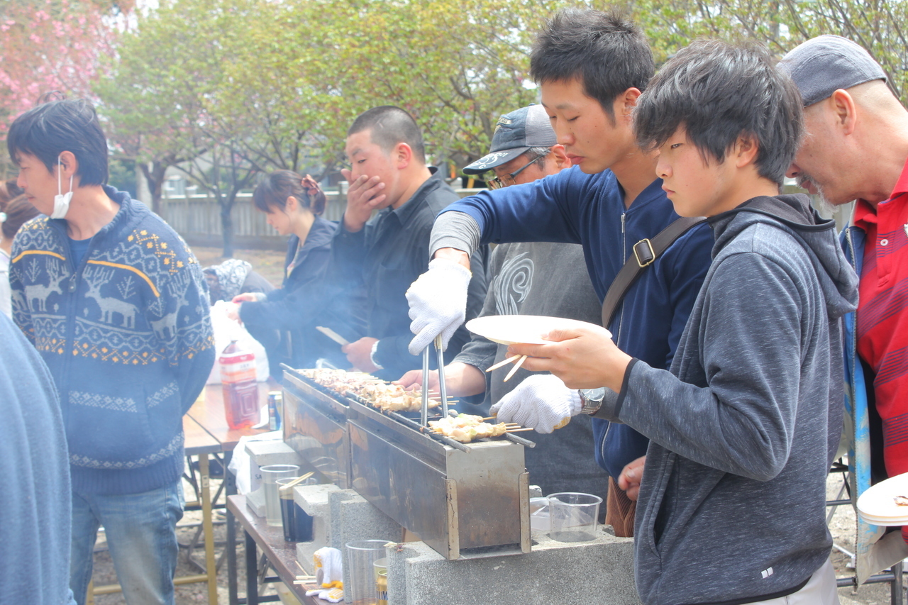 4月9日に新入社員歓迎お花見会を開催しました。良いお天気に恵まれ、春のあたたかい陽気の中でバーベキューを楽しみました。焼肉、焼き鳥、海鮮焼き、お寿司等、美味しいものを全部集めました!